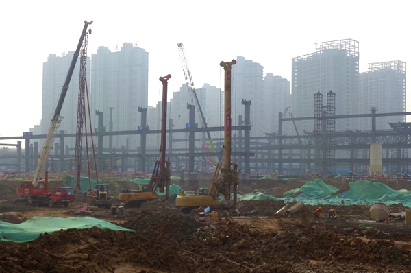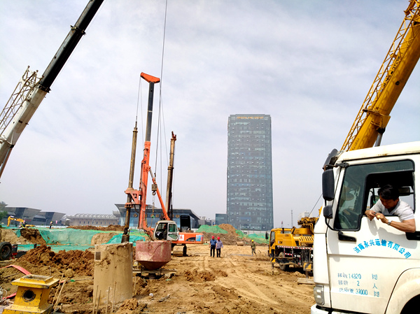 濟南西部會展中心,占地332畝,其中地上建筑22.6萬平方米,總建筑面積55萬平方米,是濟南又一個地標(biāo)式建筑。圖為我公司正在施工樁基礎(chǔ)