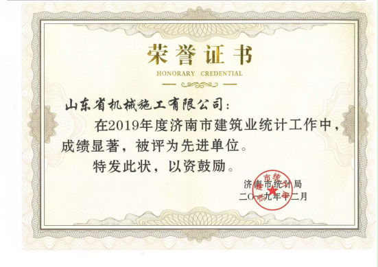 山東省機(jī)械施工有限公司被評為濟(jì)南市建筑業(yè)統(tǒng)計(jì)工作先進(jìn)單位