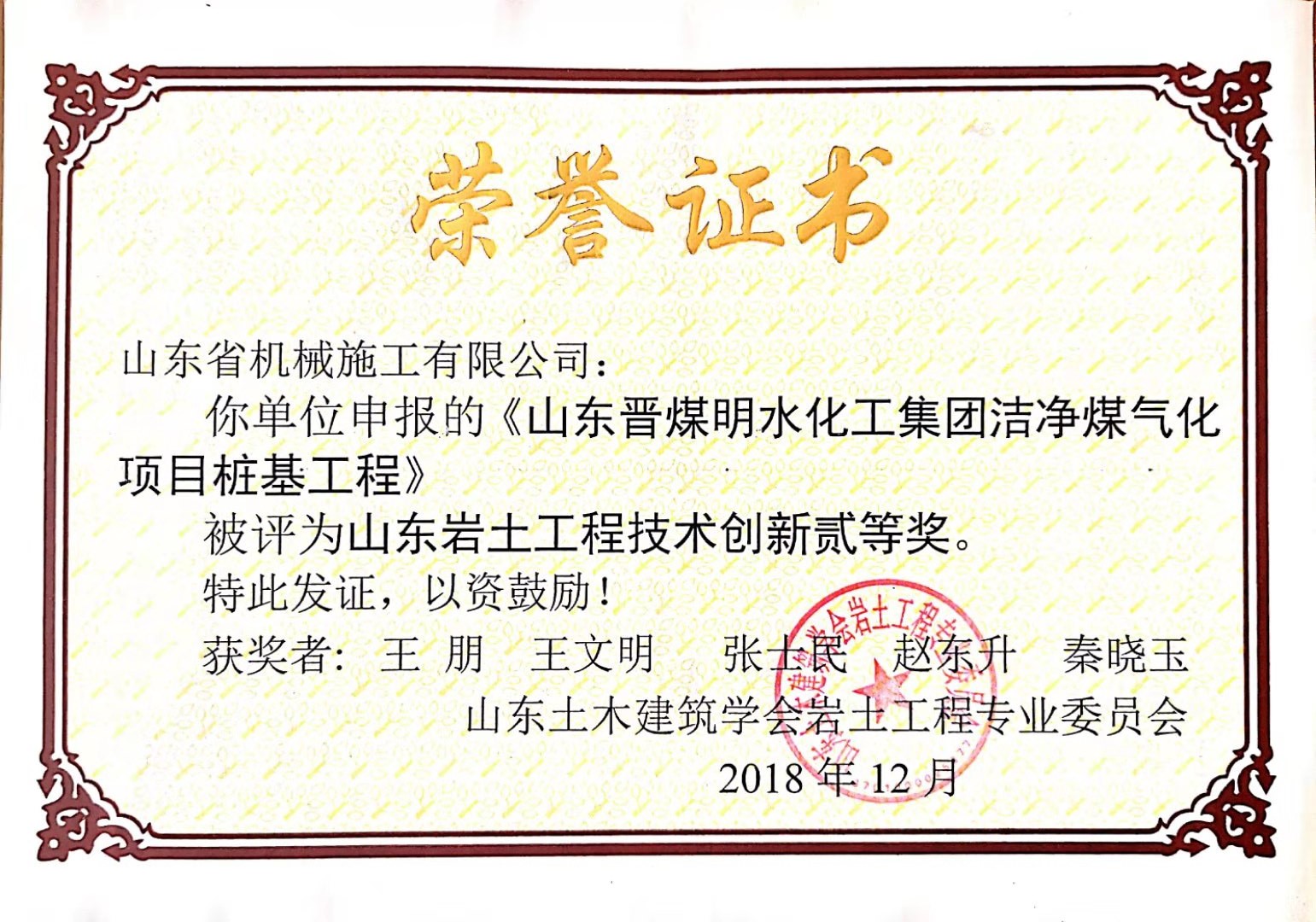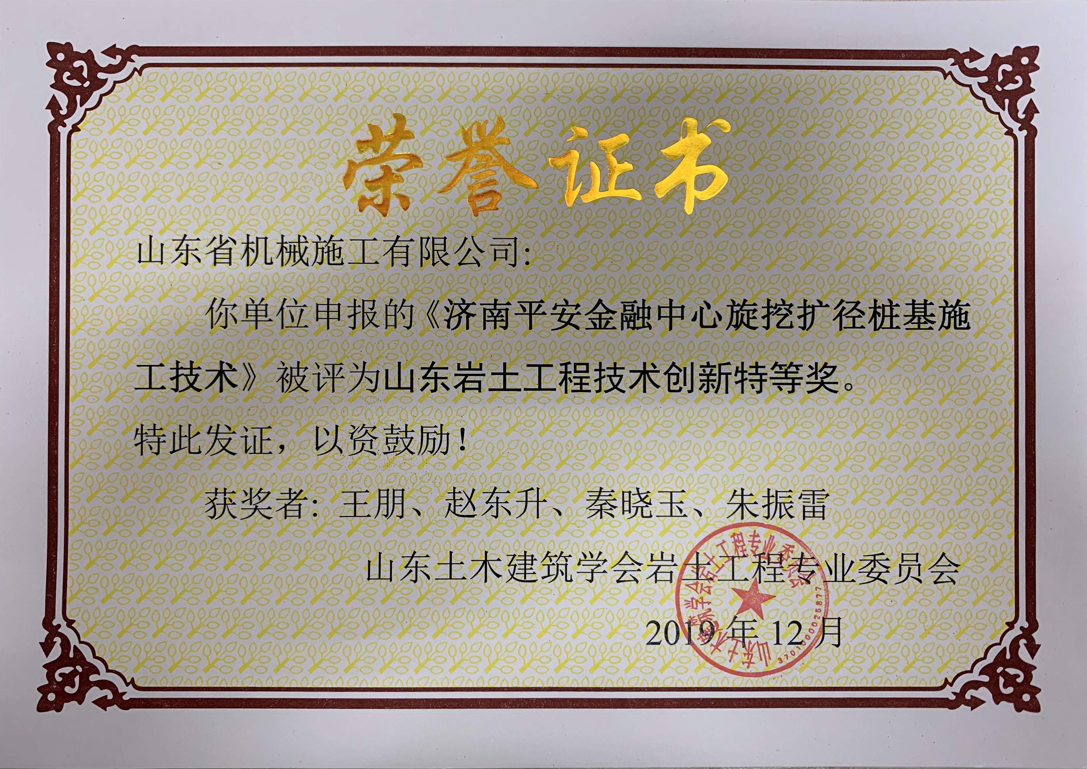 在王朋同志參與的眾多工程中,其中,菏澤恒大陽光半島項(xiàng)目樁基工程,完成產(chǎn)值約2430萬元;濟(jì)南平安金融中心樁基工程,完成產(chǎn)值約1500萬元,并榮獲山東巖土工程技術(shù)創(chuàng)新特等獎;菏澤建邦中央公園樁基工程,完成產(chǎn)值約900萬元,并榮獲山東巖土工程技術(shù)創(chuàng)新優(yōu)秀成果;山東晉煤明化潔凈煤氣化項(xiàng)目管樁工程,完成產(chǎn)值735萬元;魯能領(lǐng)秀城抗浮錨桿工程,完成產(chǎn)值約800萬元。綠地泉景隆悅公館榮獲山東省深基礎(chǔ)優(yōu)秀工程一等獎;濰坊恒大名都工程榮獲山東省深基礎(chǔ)優(yōu)秀工程二等獎;濟(jì)南銀豐玖璽城項(xiàng)目、山東晉煤明化樁基工程、濰坊翡翠華庭灌注樁工程等多個項(xiàng)目被評為“山東巖土工程技術(shù)創(chuàng)新”二等獎,參與編寫了“超大直徑嵌巖灌注樁多次成孔擴(kuò)孔”施工工法,為公司創(chuàng)造了良好的經(jīng)濟(jì)效益和社會效益,贏得了建設(shè)單位和公司領(lǐng)導(dǎo)的稱贊。