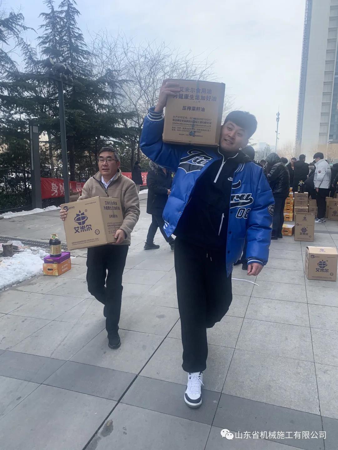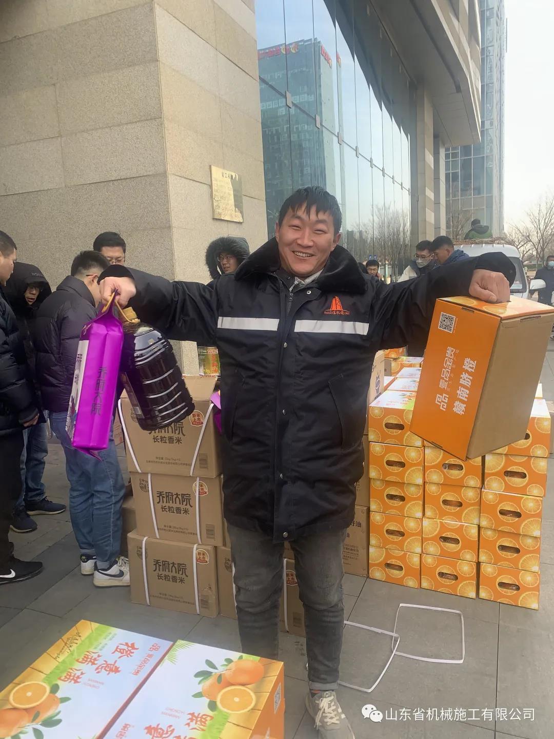 新春臨近,為感謝全體員工一年來的努力付出、關(guān)心職工生活、讓員工開開心度過一個(gè)歡樂、祥和的春節(jié),1月26日上午,山東省機(jī)械施工有限公司為每位員工發(fā)放了豐富的春節(jié)年貨,沉甸甸的年貨給全體員工帶來了新年的氣息。