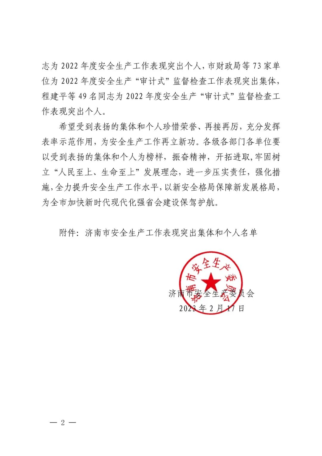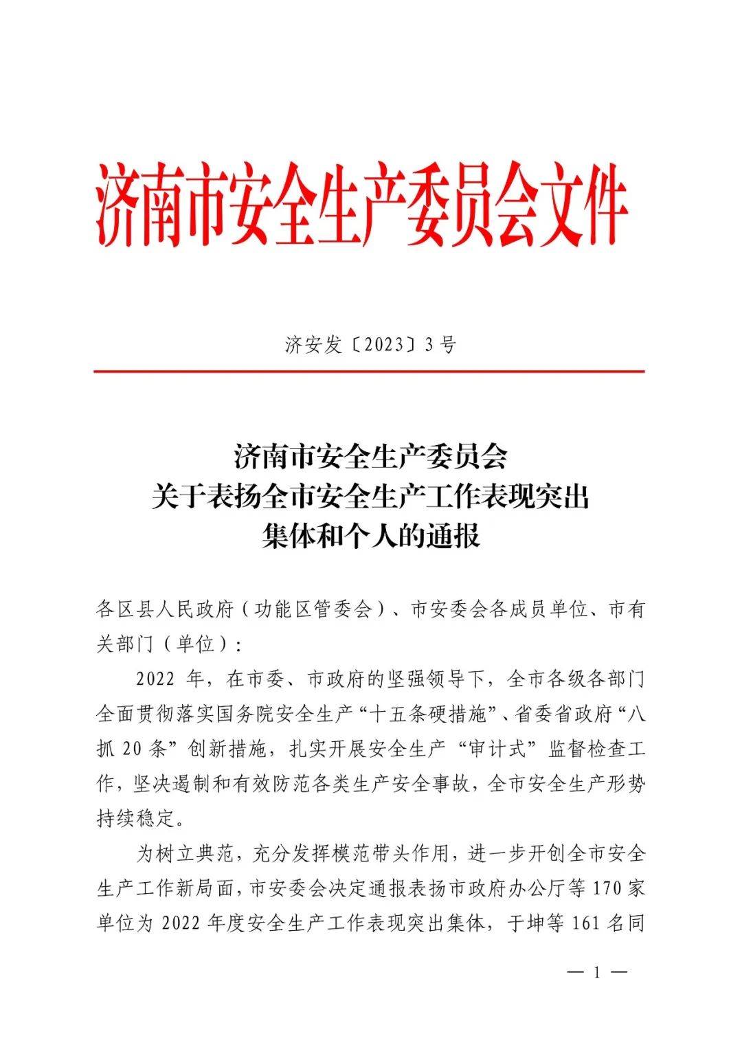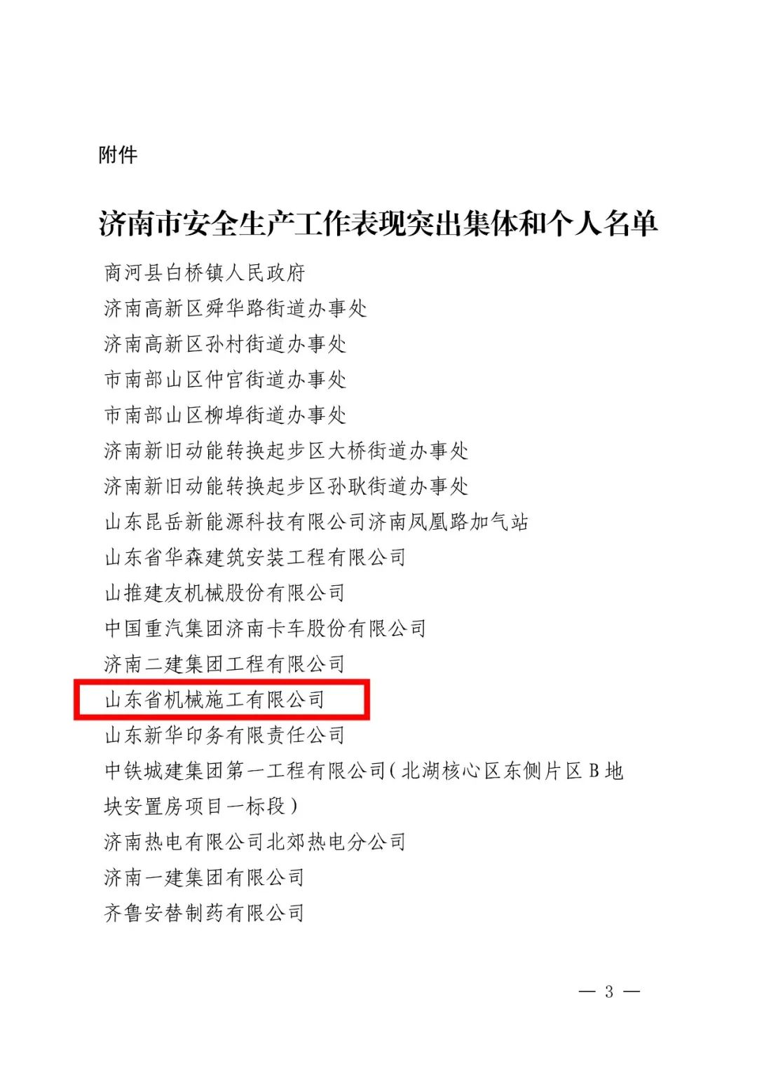 通報(bào)表揚(yáng)|山東省機(jī)械施工有限公司被評(píng)選為 2022 年度安全生產(chǎn)工作表現(xiàn)突出集體