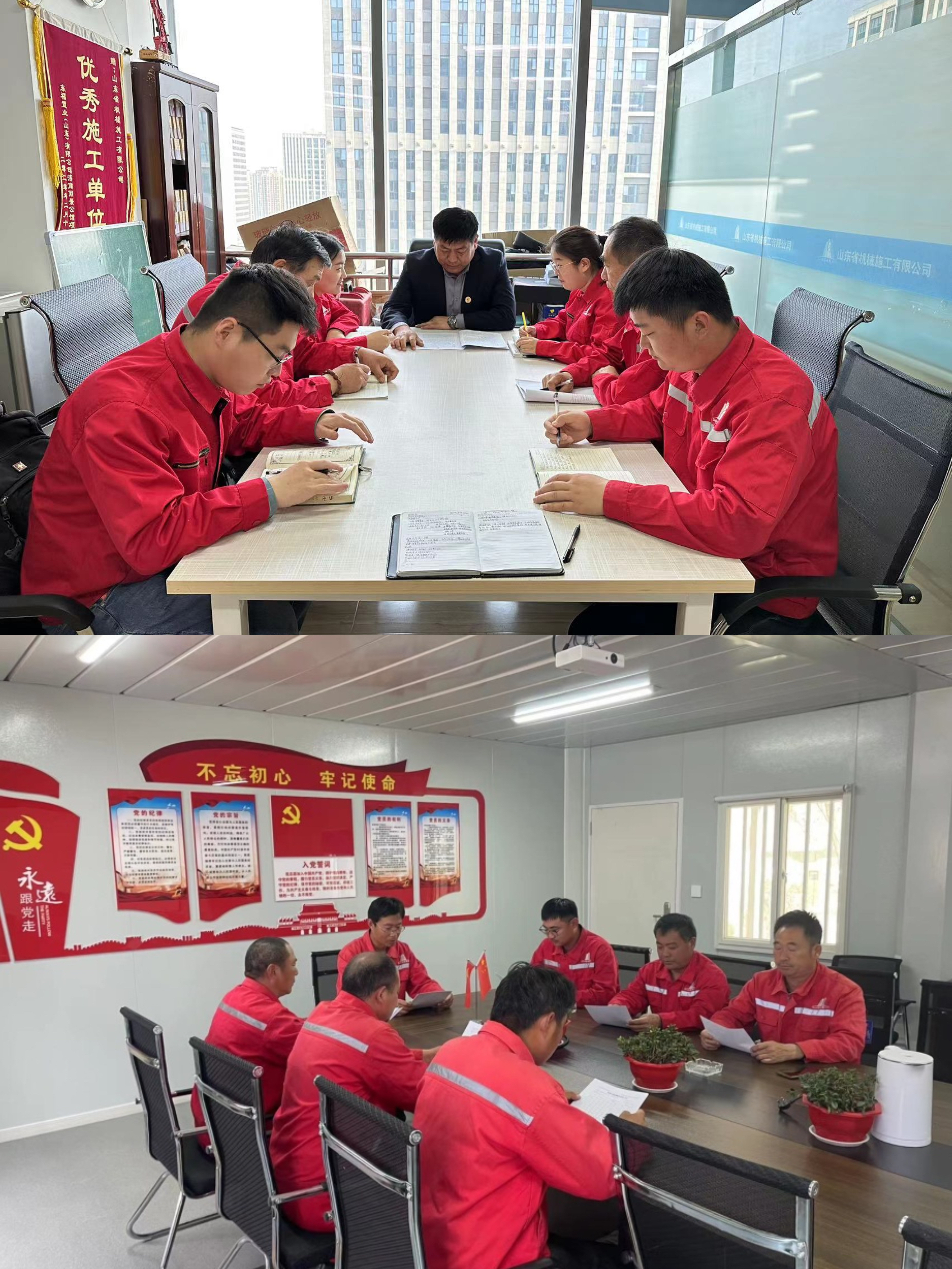 巖土分公司青島上合廣場指揮部學(xué)習(xí)傳達生產(chǎn)會精神。
