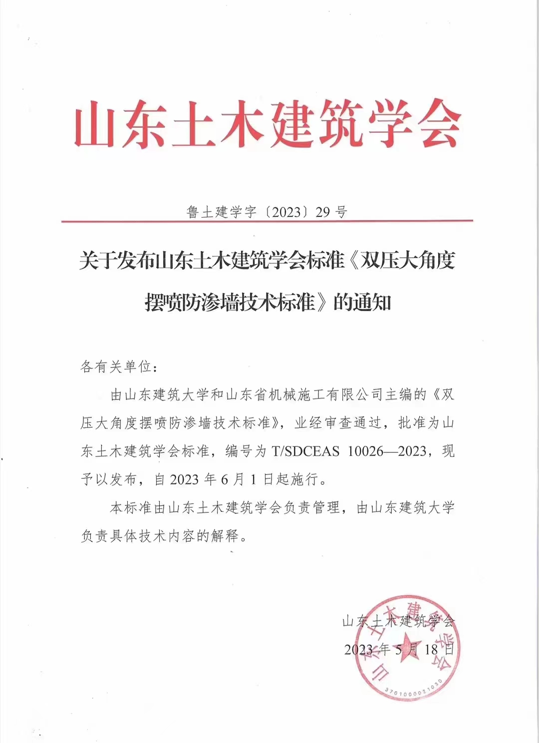 5月18日,山東省機械施工有限公司與山東建筑大學聯(lián)合主編的兩項技術標準,被批準為省團體標準。