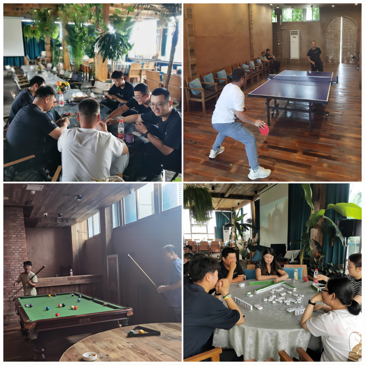 到達目的地后,大家三五結伴的自由活動,有打臺球、乒乓球等球類運動的,也有打撲克、麻將等娛樂活動的,處處洋溢著歡聲笑語。