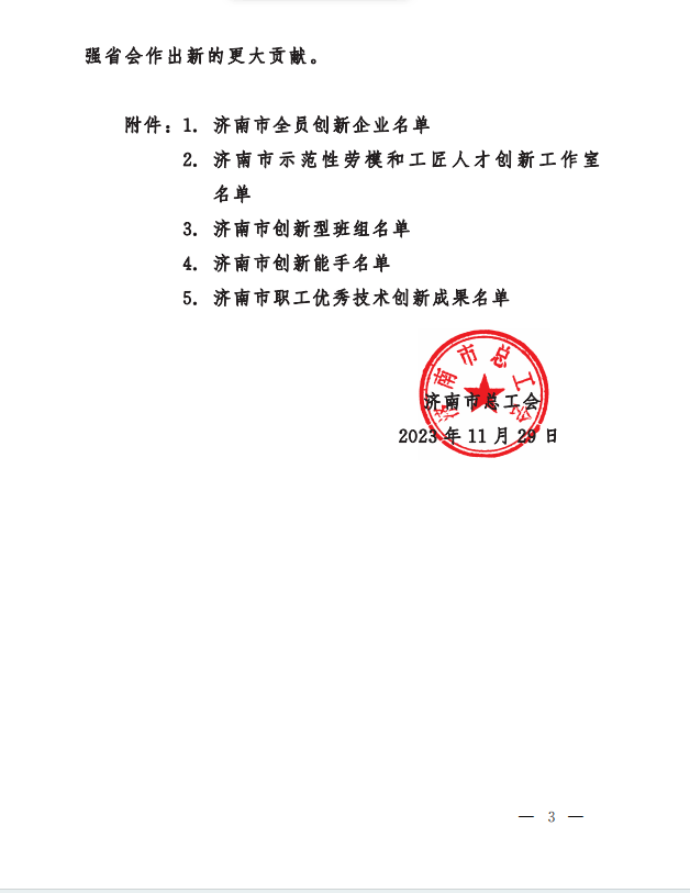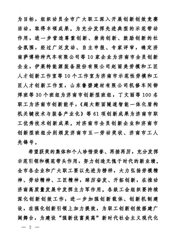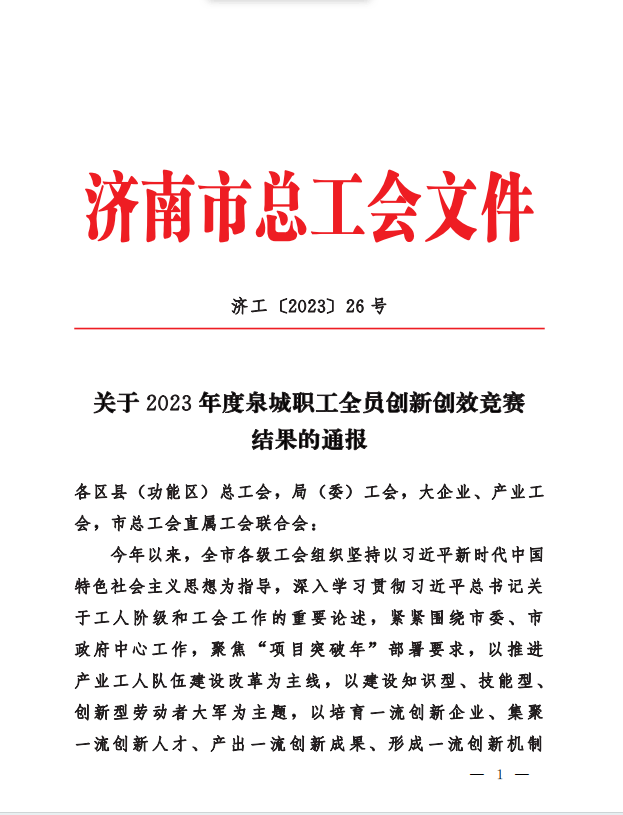 喜報(bào)|山東省機(jī)械施工有限公司研發(fā)的新技術(shù)被評(píng)選為濟(jì)南市職工優(yōu)秀技術(shù)創(chuàng)新成果二等獎(jiǎng)