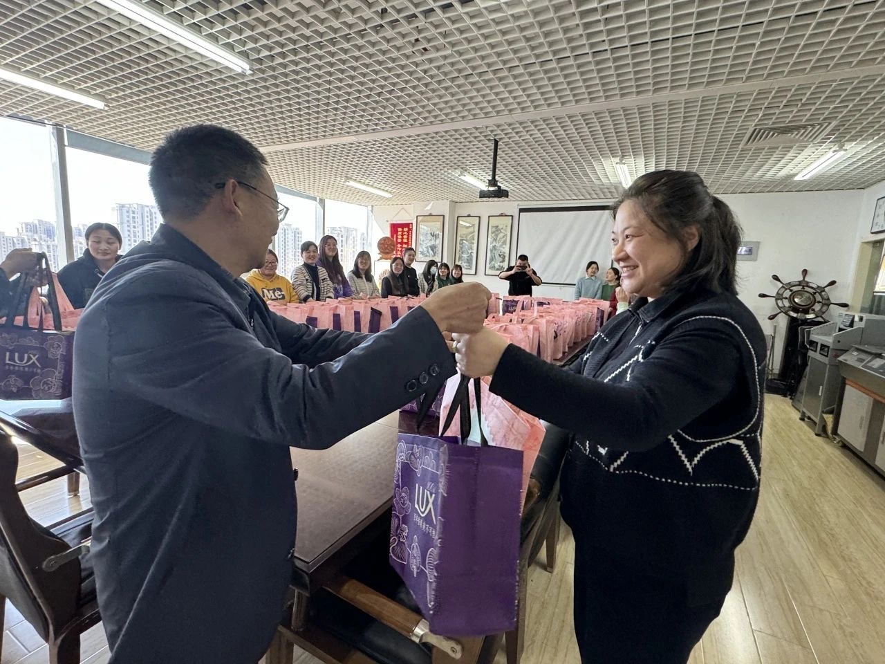 “遲日江山麗,春風(fēng)花草香。”在這個(gè)草木蔓發(fā)、春山可望的美好時(shí)節(jié),我們迎來(lái)了一年一度的“三八”婦女節(jié)。3月8日上午,受沈繽董事長(zhǎng)委托,公司副董事長(zhǎng)周廣泉、財(cái)務(wù)總監(jiān)徐占全向女職工們致以節(jié)日的問(wèn)候和祝福,并為大家發(fā)放節(jié)日福利。