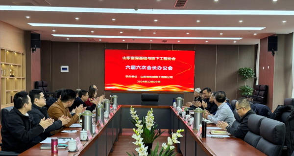 2024年12月27日,山東省深基礎(chǔ)與地下工程協(xié)會六屆六次會長辦公會在山東省機械施工有限公司召開。山東大學李連祥會長、武科秘書長及中鐵十四局集團有限公司陳健副理事長等9家會長單位的會長、副會長、副秘書長等參加了本次會議。山東省機械施工有限公司作為承辦及副會長單位公司副董事長、總工程師周廣泉、總經(jīng)理楊明等領(lǐng)導出席本次會議。
